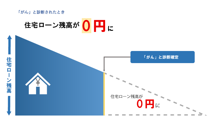 医師によりがん(※)と診断された場合、当該保険金が支払われ、住宅ローンの返済に充当になり、住宅ローンの残高が0円となります。
