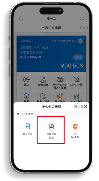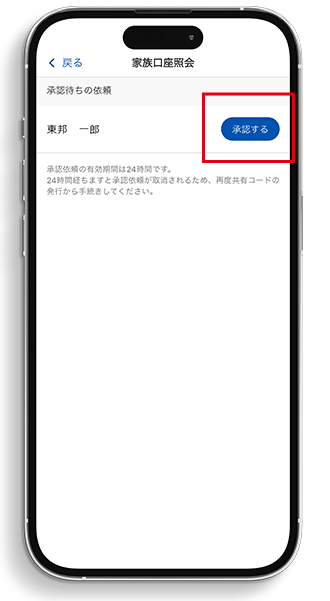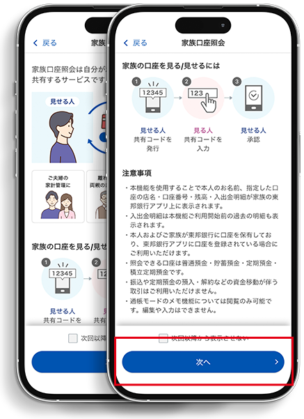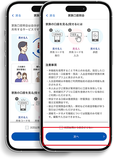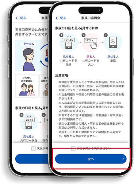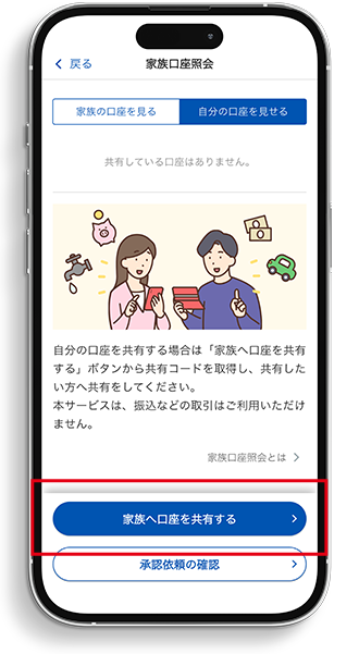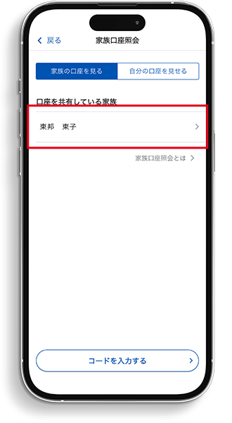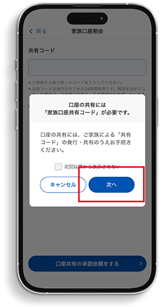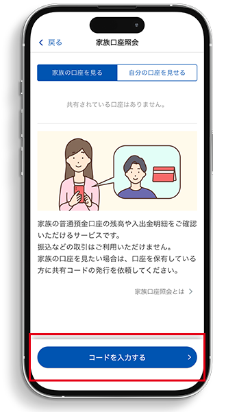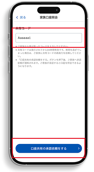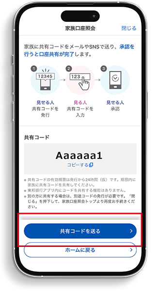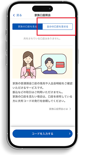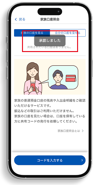 「口座を見る人」の操作(登録編(2)-共有コード入力まで)