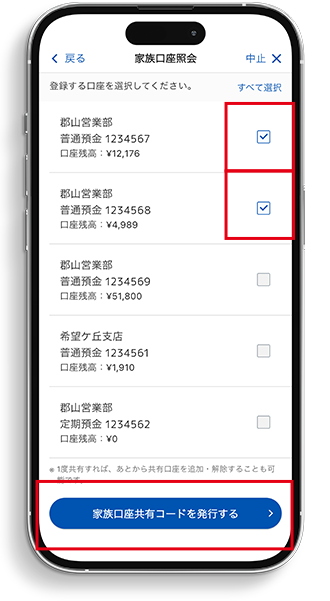 「口座を見せる人」の操作(登録編(1)-共有コード発行まで)